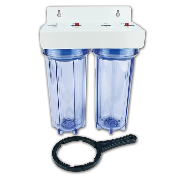10″ Double Standard Clear Filter Housing with 10″ Water Filter Housing with 3/4″ BSP Thread.
